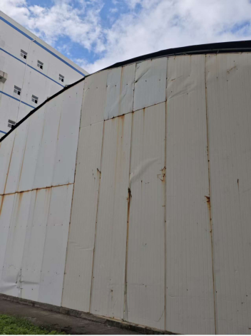 發(fā)現(xiàn)圓煤倉(cāng)大門(mén)北側(cè)車(chē)棚松動(dòng)、立即加固
